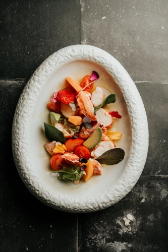 Ensaladilla de papa negra con langostinos